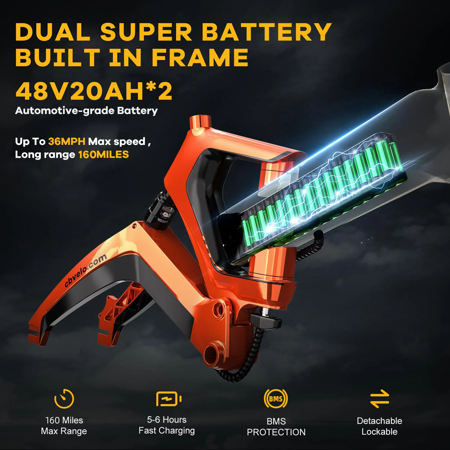 Long-Lasting 48V 25Ah Battery: E-bike ride farther with the high-capacity lithium-ion battery, providing a range of up to 100 miles on a single 6-hour charge. The waterproof, removable, and hidden battery cells allow for two charging options: charge directly on the folding electric bike or remove the battery for convenient charging. This foldable e-bike is perfect for long commutes, weekend adventures, or off-road excursions, offering maximum flexibility.
