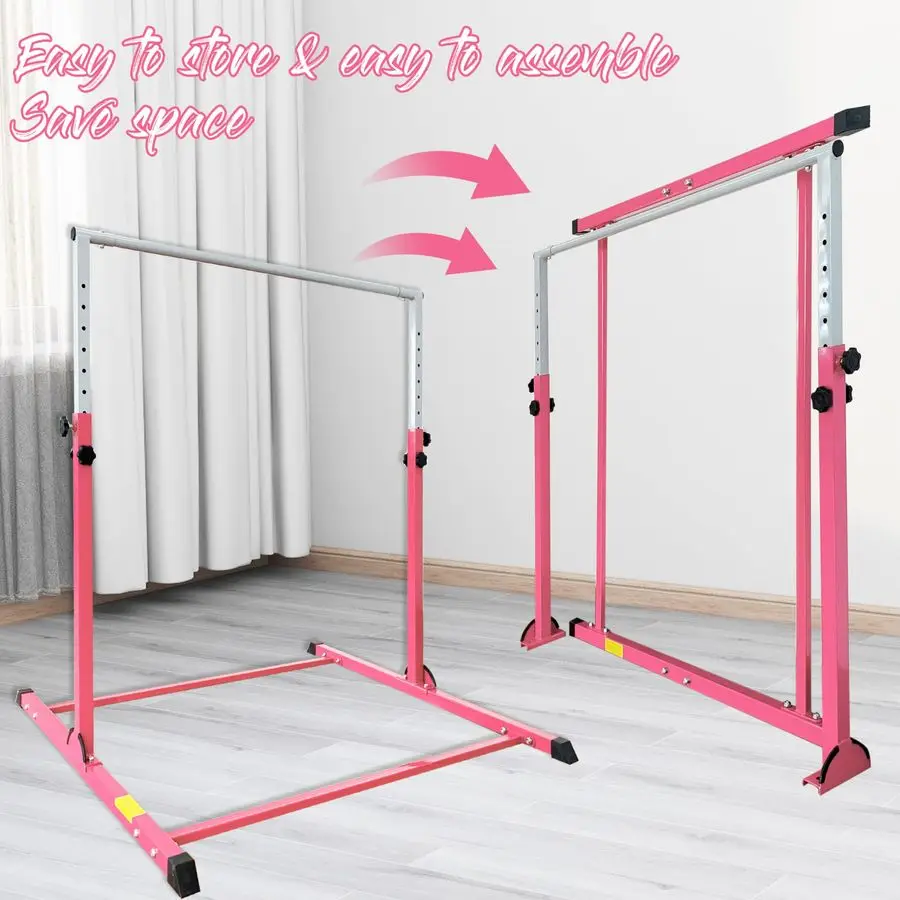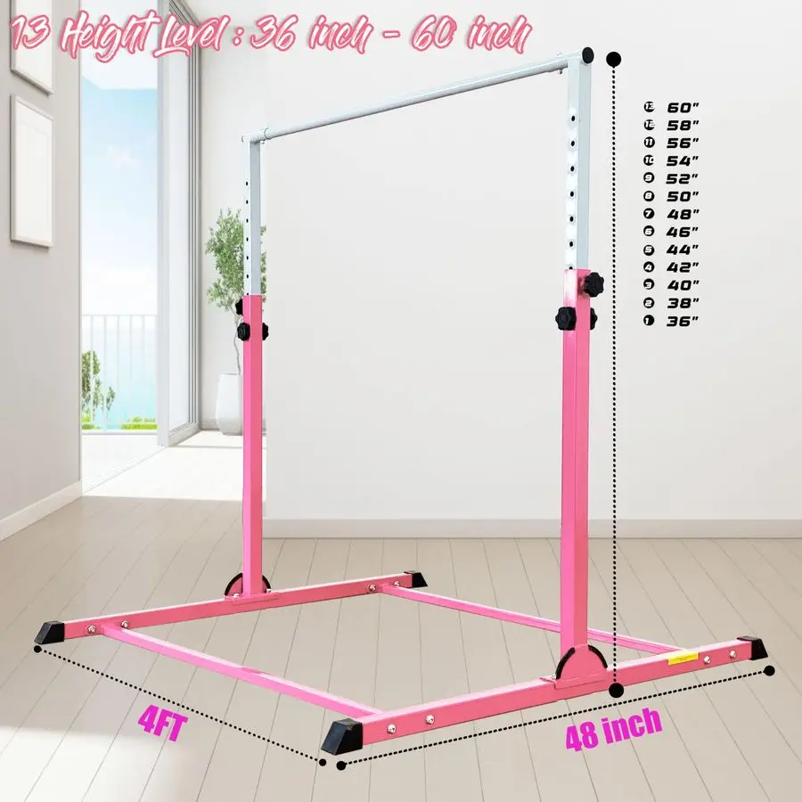 Idea Size For Home And Club Use this kip bar length is 4 Ft, height is adjustable from 36 inch to 60 inch, inner width is 4 ft, meets most exercise requirement, and it is not small and not big, do not take up too much room during you use it